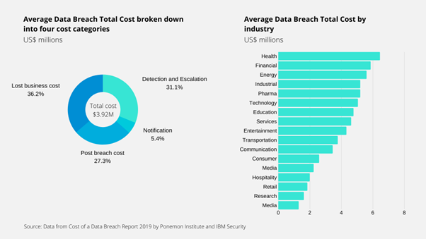 In today’s hyper-connected world, data breaches continuously dominate headlines. A data breach is one of the greatest concerns for an organisation with the average cost estimated to $3.92 million, a 12% rise over the last five years, according to the 2019 Cost of a Data Breach Report from IBM and the Ponemon Institute. This includes a combination of direct and indirect costs related to compromised reputation, legal ramifications, costs of containing the breach, compensating affected customers, realizing a decreased share value and amplified security costs. Due to the highly sensitive nature of data, the health and financial sectors unsurprisingly bear the largest costs per breached record: up to $429 in healthcare and $210 in finance.